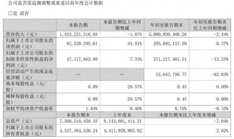 其中第三季度,公司营业收入为14.3亿元,同比下降1.9%;归母净利润为8252万元,同比上升34.9%;扣非归母净利润为4712万元,同比上升7.3%;EPS为0.0939元。